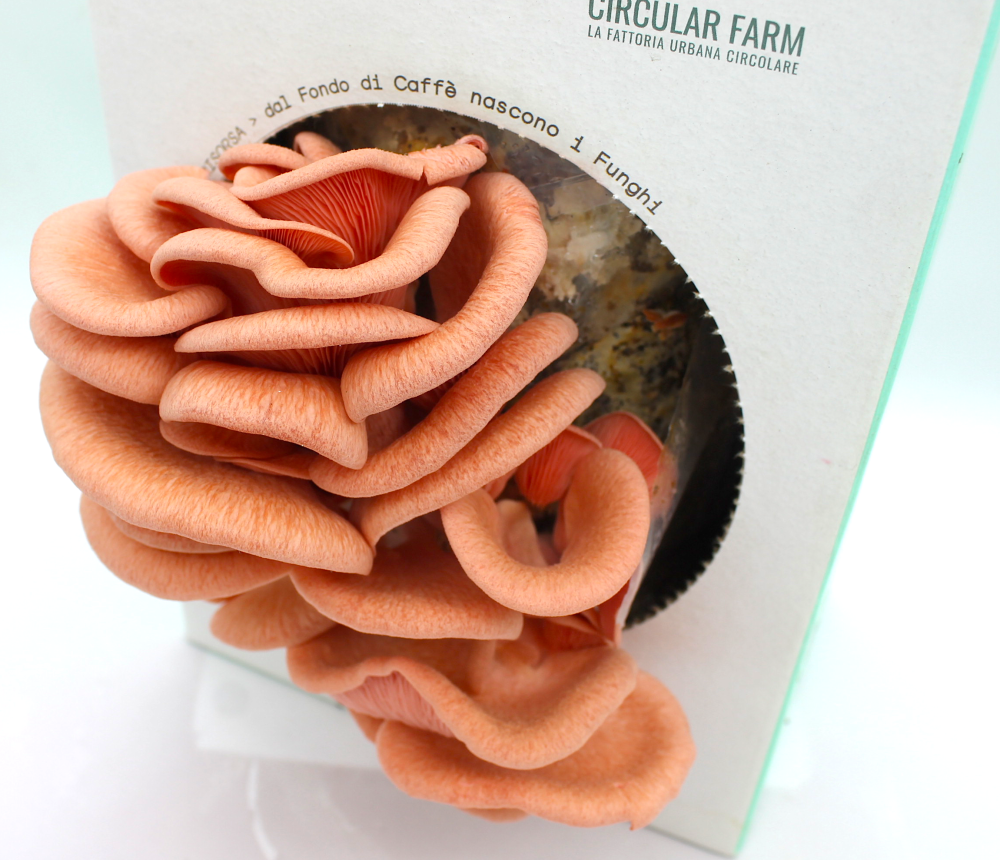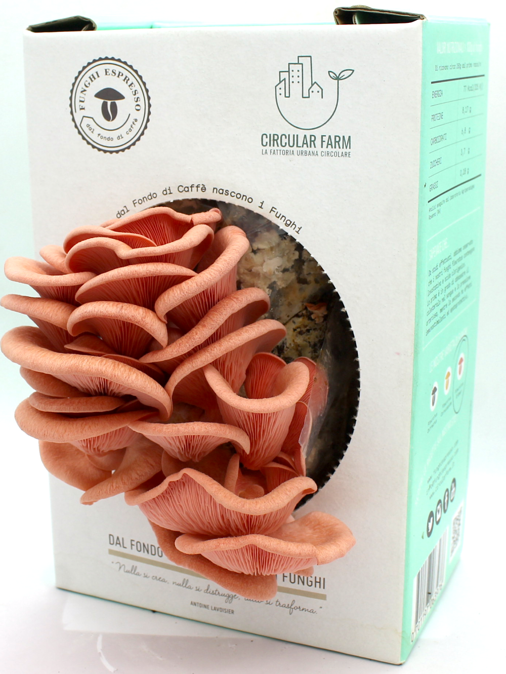 Il kit Funghi Espresso, contiene substrato pronto per la coltivazione di funghi. Il substrato di coltivazione è realizzato con il fondo di caffè recuperato nei bar del comune di Scandicci (FI).
